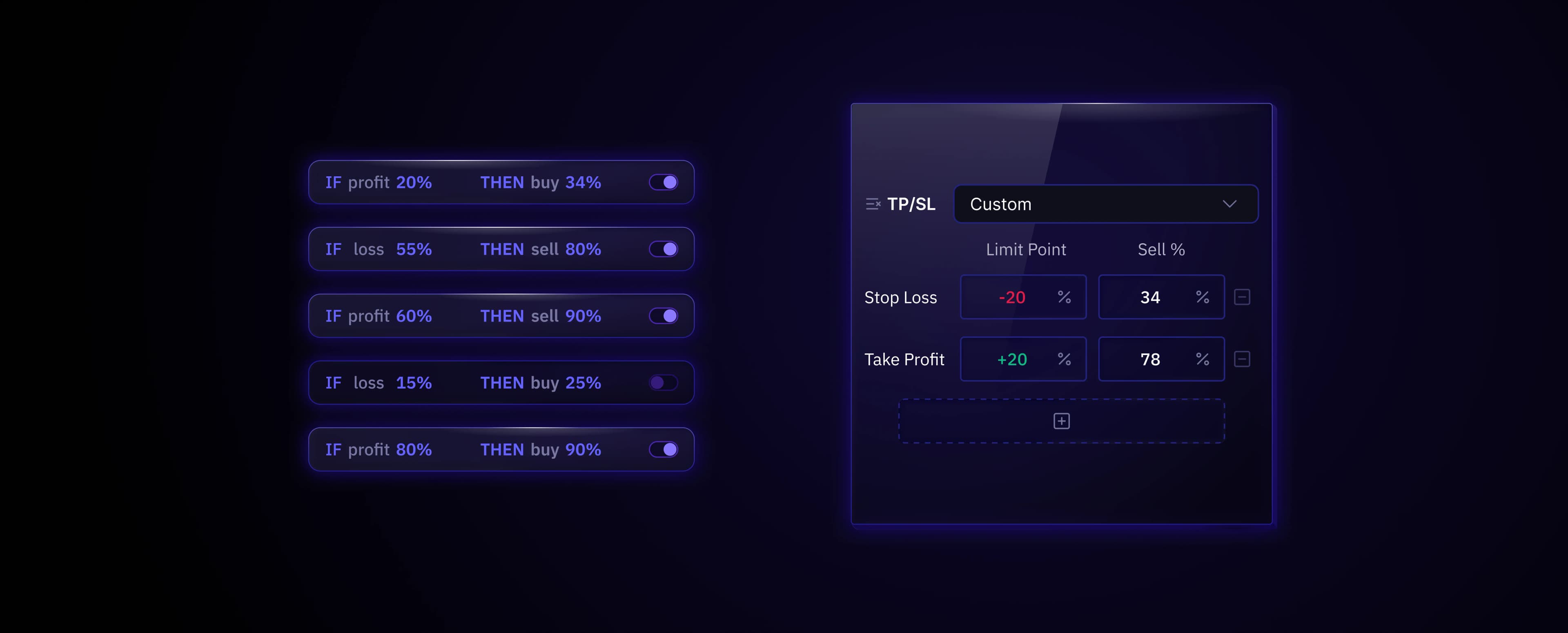 Ladder in. Scale out. Trail stops. Chain take-profits with stop-losses in a single setup. Stack conditional orders that fire in sequence - so your strategy plays out exactly as planned, even while you sleep.